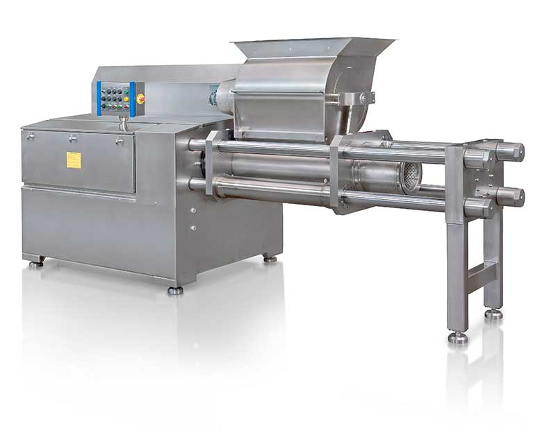 The principe of separation is the same as his successful brother. However we made a few significant changes. To maximize floor space we redesigned the pressing chamber and counterram section. In stead of a moving counterram we incorporated a moving pressing chamber which presses against a strong back plate and filter. Hourly throughput of this machine reaches up to 2.500Kg.
